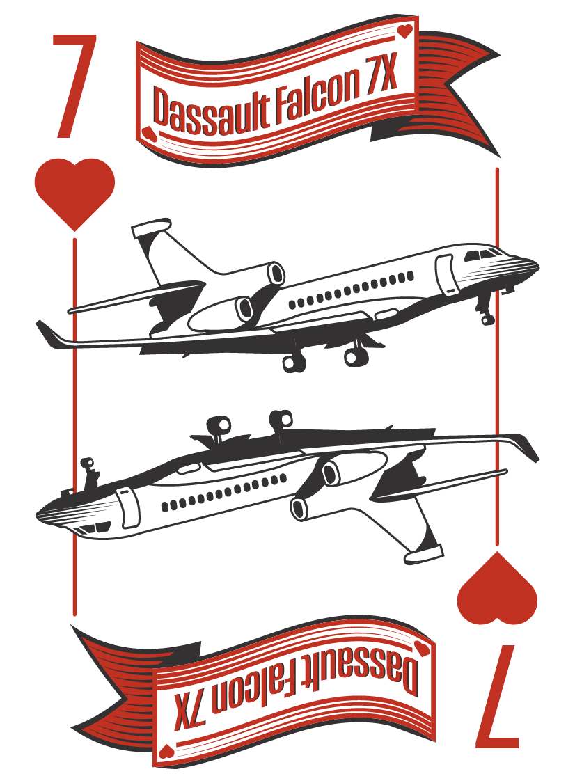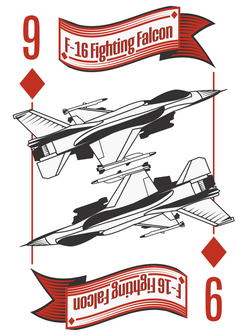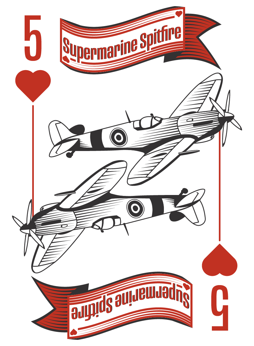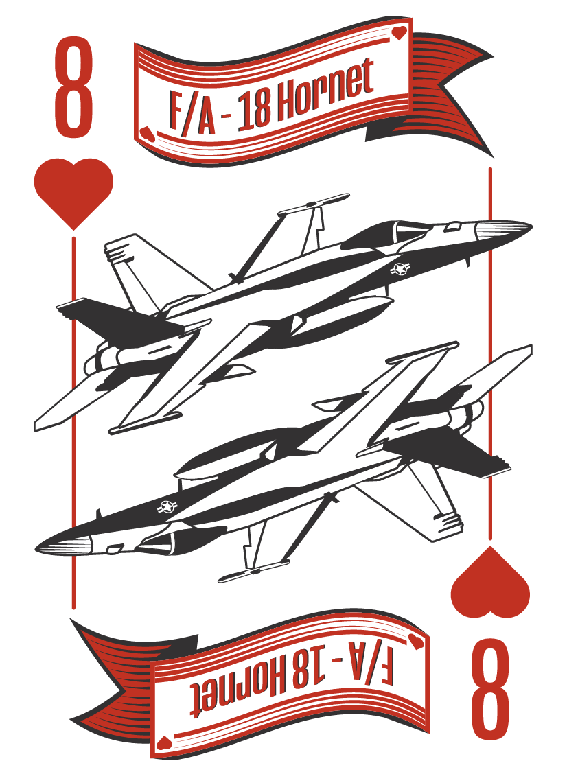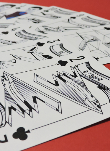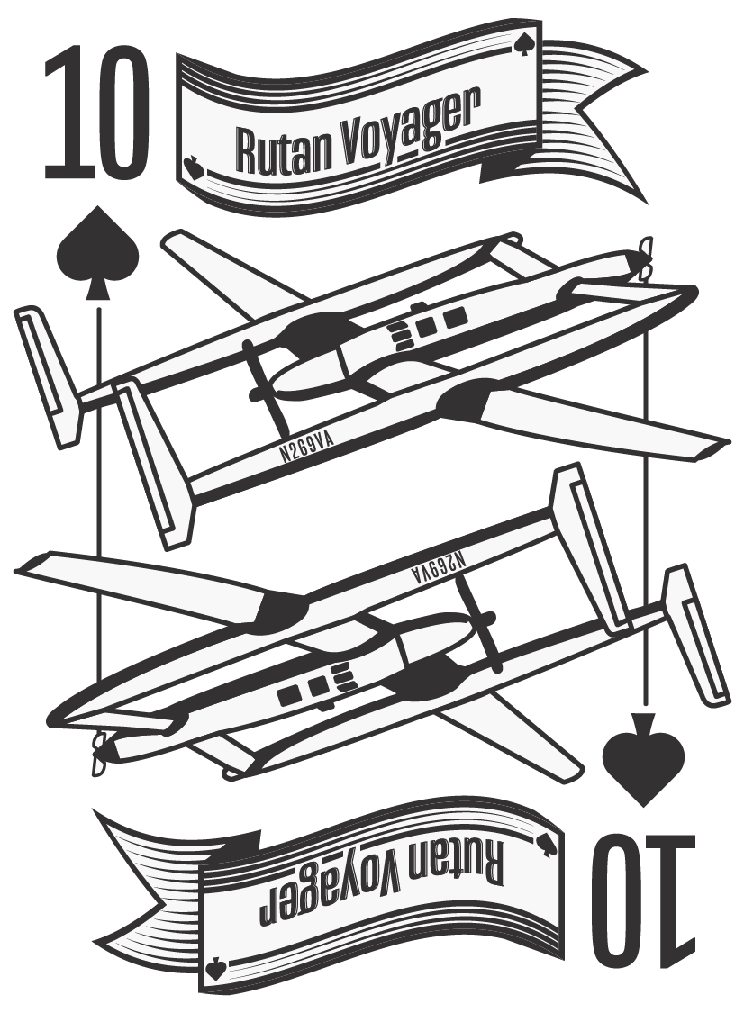 The number cards in this deck feature famous types of planes like the Bell-x1, the first plane to go faster than the speed of sound. Also features the Rutan Voyager, first aircraft to fly around the world without refueling. The face cards feature prominent aviators like Amelia Earhart and the Wright Brothers. The Aces feature exceptional pilots like Bob Hoover.