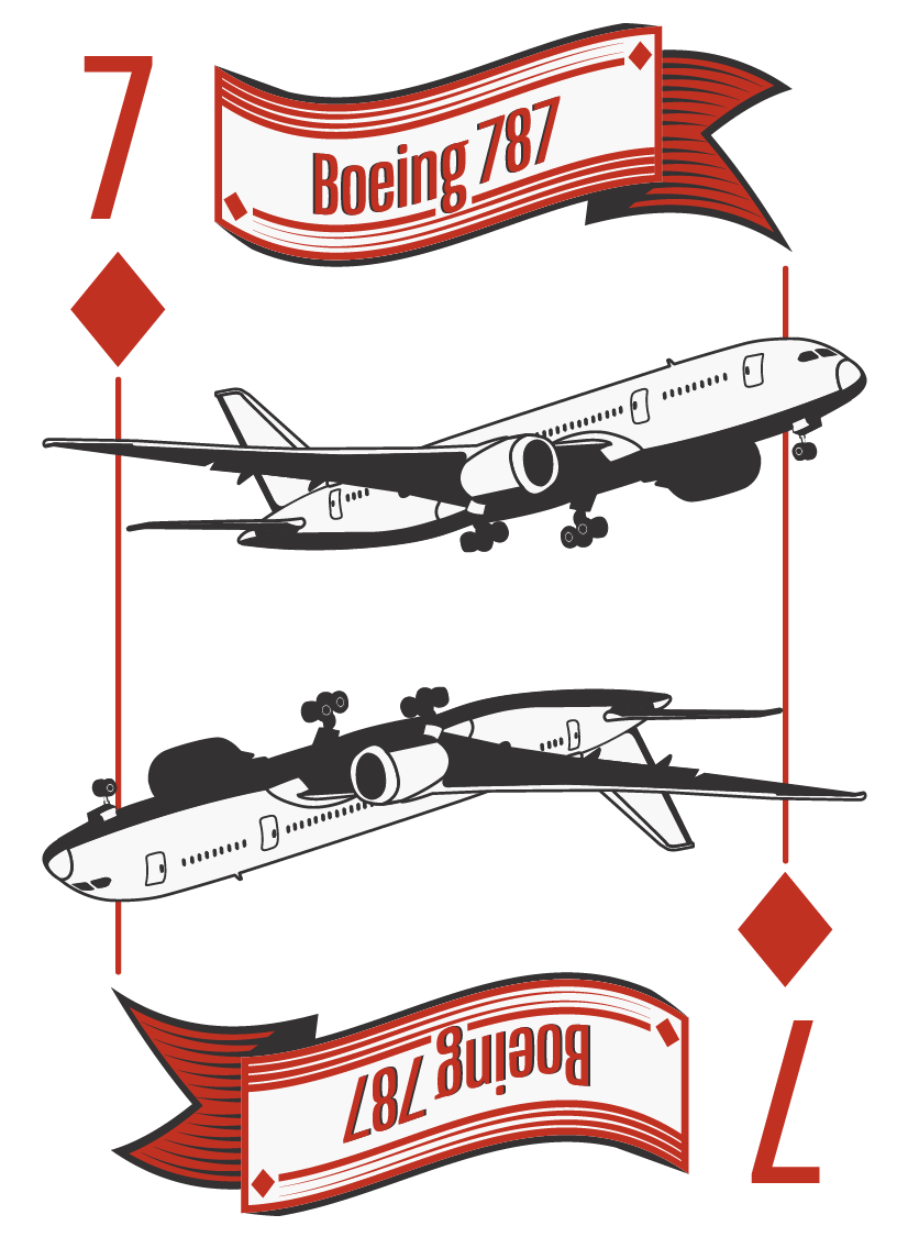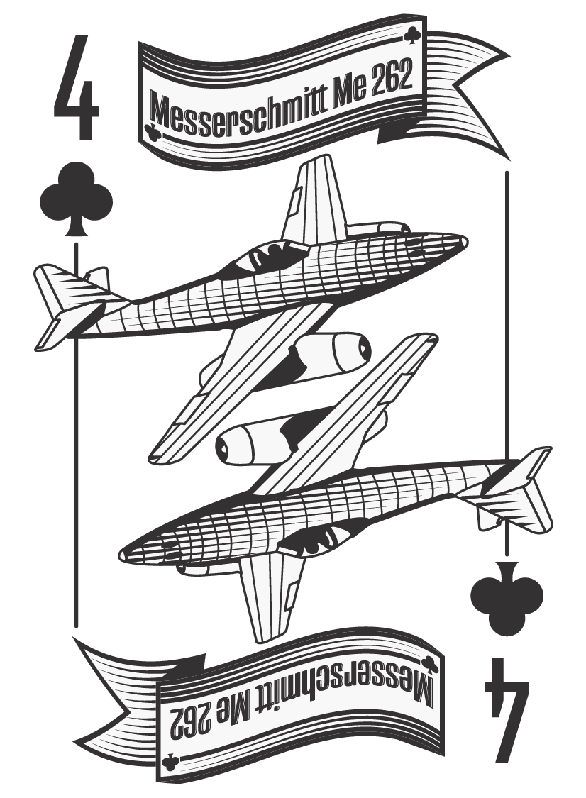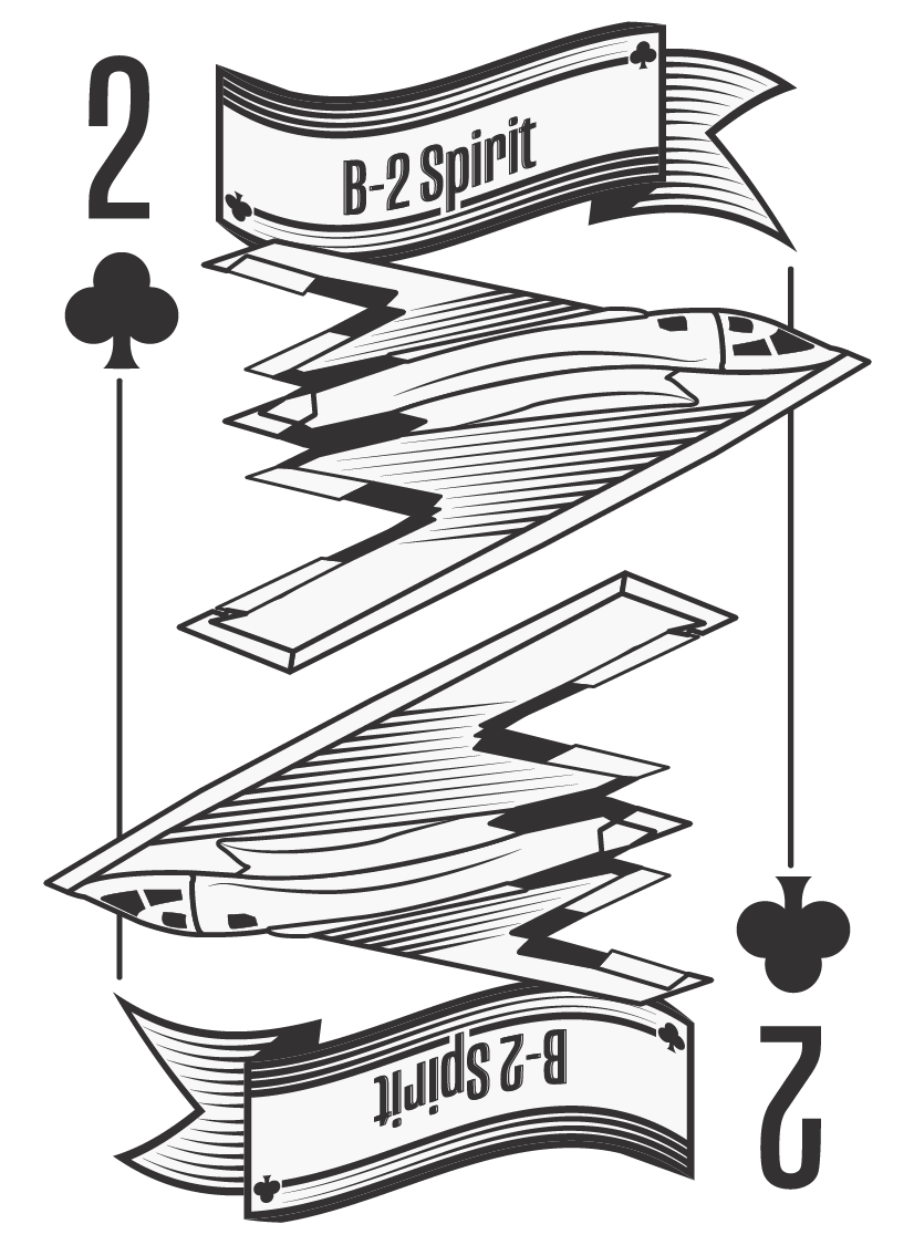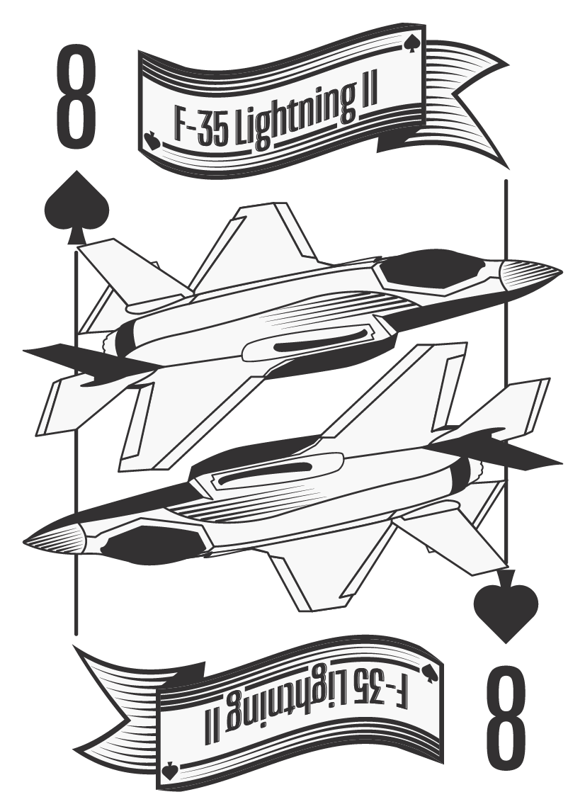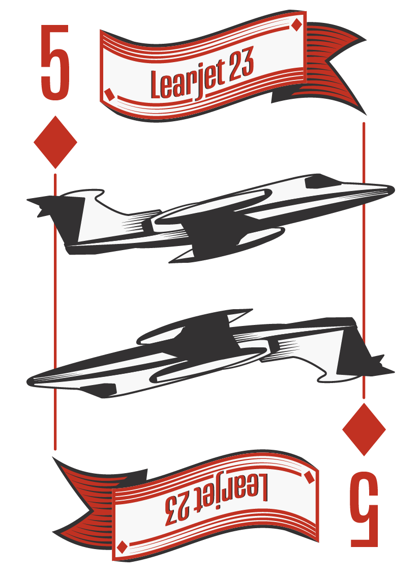 The number cards in this deck feature famous types of planes like the Bell-x1, the first plane to go faster than the speed of sound. Also features the Rutan Voyager, first aircraft to fly around the world without refueling. The face cards feature prominent aviators like Amelia Earhart and the Wright Brothers. The Aces feature exceptional pilots like Bob Hoover.
