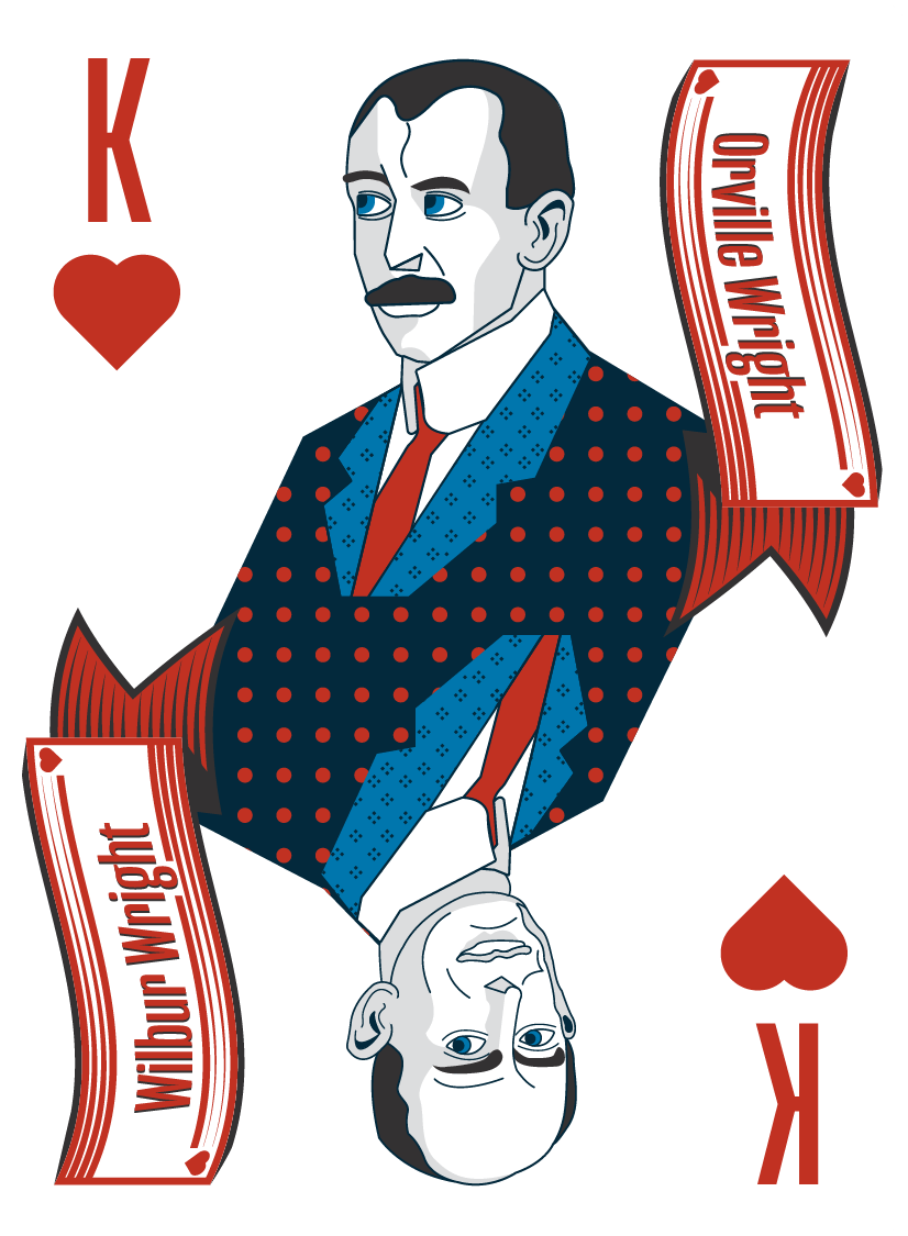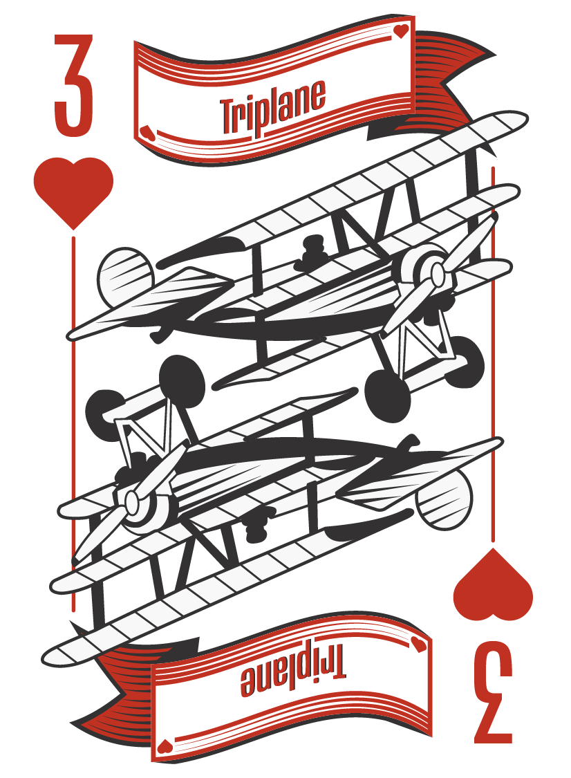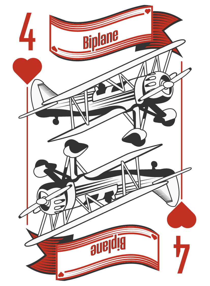 Airborne is the very first deck I created for Wanderer back in my senior year of college in 2018. This Poker sized deck of playing cards features illustrations of famous aircrafts and aviators who helped shape the world we know and love. It honors the pilots and engineers who brought to life some of the most influential aircrafts into existence. It contains 52 different illustrations, one for each card. The back of the card design and tuckbox design showcase important aviation iconography like propellers and famous aircrafts.