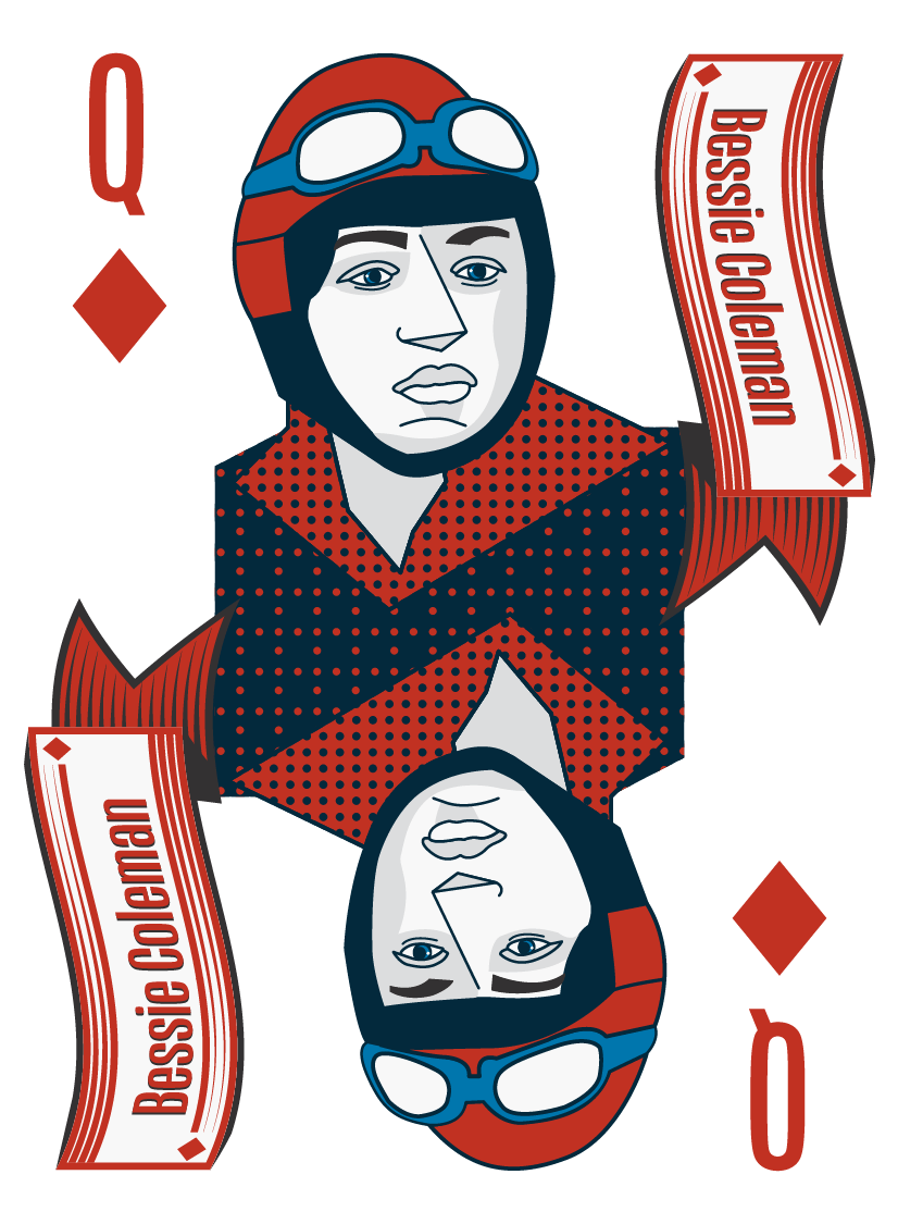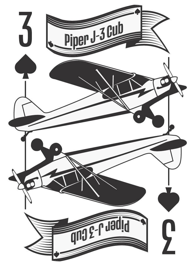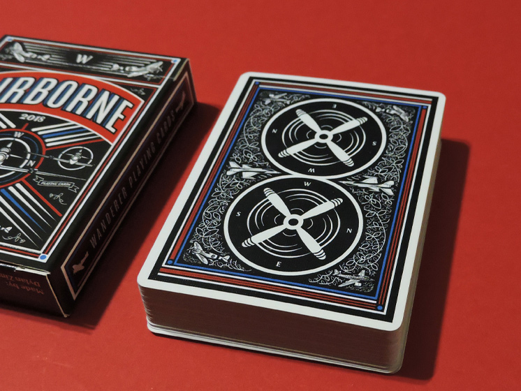Airborne is the very first deck I created for Wanderer back in my senior year of college in 2018. This Poker sized deck of playing cards features illustrations of famous aircrafts and aviators who helped shape the world we know and love. It honors the pilots and engineers who brought to life some of the most influential aircrafts into existence. It contains 52 different illustrations, one for each card. The back of the card design and tuckbox design showcase important aviation iconography like propellers and famous aircrafts.